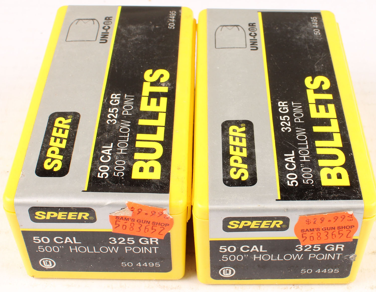 | Speer, Lot of (2), .50 Cal., 325 Grain .500 Hollow Point, FULL ...