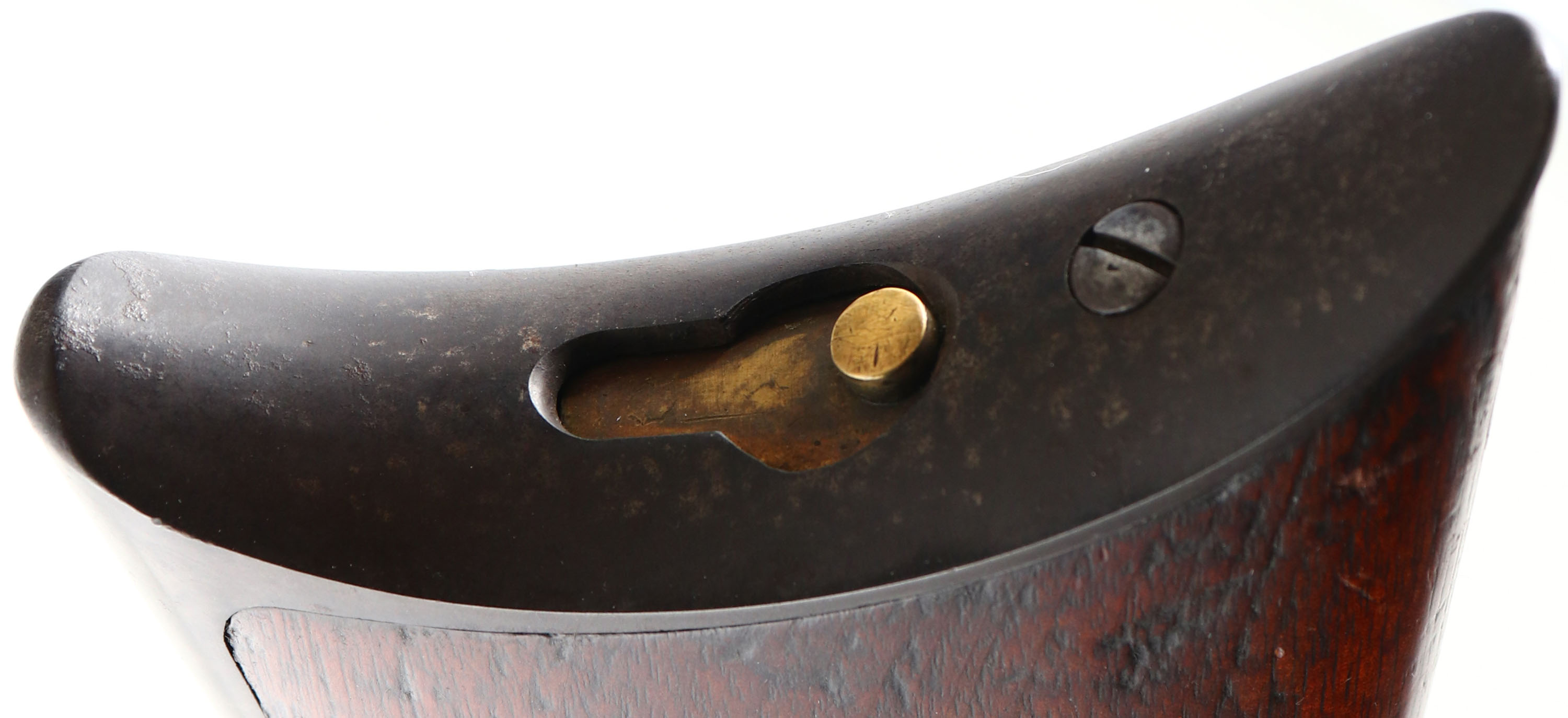 EARLY Winchester, Model 1873, 1st model, .44 WCF Cal., MFG: 1876, SN: 20068, Lever Action Rifle, 26'' Octagon barrel, 1/2 mag. The original wood stocks are excellent & solid, with numerous minor to small handling marks & contusions to the original finish. The original metal blue finish rates 80% on the barrel, 60% on the receiver, with a brown patina developing in areas of thinning & loss. The receiver carries the early thumbprint dustcover, without the center guide rail, which was a feature on only the first 30,000 or so rifles. Barrel fitted with an adjustable rear & pinch blade front sights. Bore is excellent & bright. Stock carries a sliding trapdoor crescent metal buttplate, with the four piece cleaning rod inside. Fantastic early production 1873 in excellent original condition.* Antique, No FFL Req. - Value: 12000 to 16000