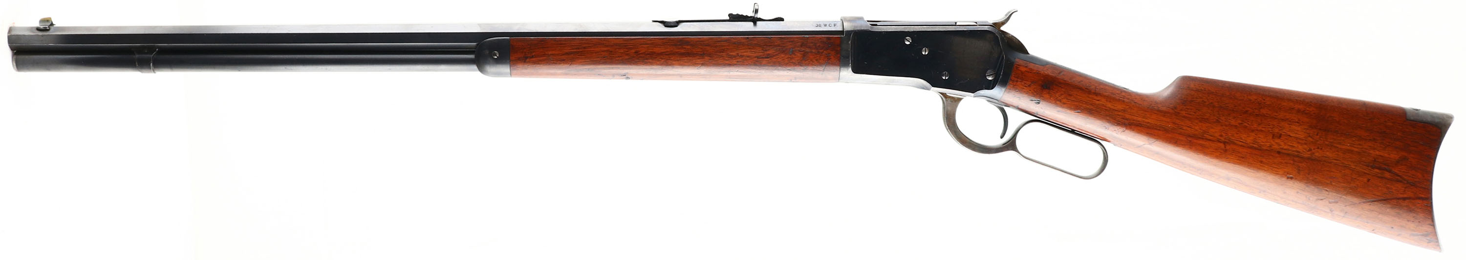 Winchester, Model 1892, marked 38 WCF, MFG: 1910, SN: 531759, Lever Action Rifle, 24 1/4'' Octagon Barrel, Full mag. The original wood stocks are excellent, with several minor scratches, scuffs & contusions to the original excellent finish. The original factory blue is 98% on barrel & mag, 95% blue on the receiver. The case-hardened lever, hammer & buttplate all display the faded remains of muted case-coloring. Bore is excellent. Barrel fitted with factory adjustable rear sight & standard front sight. Metal crescent buttplate. Tight smooth action. A fantastic original condition rifle & always highly collectible in this condition.* FFL or C&R Req. - Value: 8000 to 10000