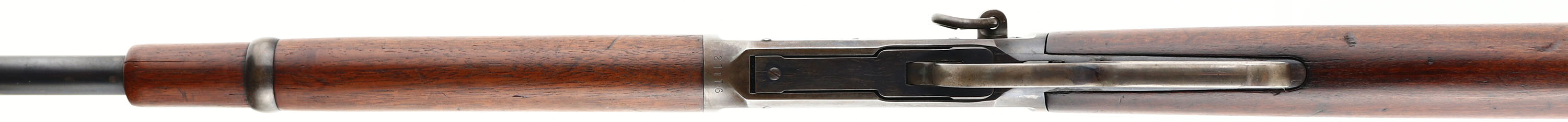 Winchester, Model 1894 Saddle Ring Carbine, CAL: 30 WCF, MFG: 1900, SN: 91112, Lever Action Carbine, 20'' barrel. The straight grip hard wood stocks are excellent. There are several small handling scuffs, scrapes & contusions to the original finish. The original metal blue finish is 80% on barrel & 70% on the mag, while the finish on the receiver has faded to a mix of thin brown patina & original blue in protected areas. The case-hardened lever & receiver display colorful case-colors. Bore is very good. The barrel holds a flip-up rear ladder sight & carbine block blade front sight. Buttstock carries a smooth carbine metal buttplate. Original saddle ring. Smooth tight action. A very nice original SRC.* FFL or C&R Req. - Value: 1500 to 3000