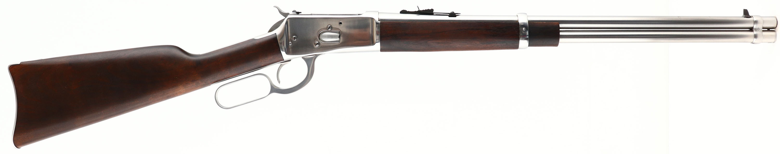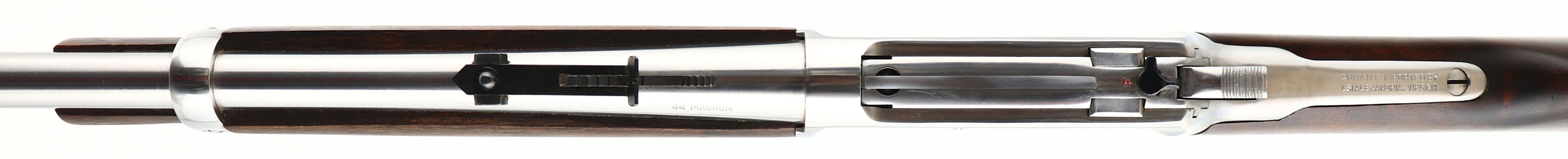 Puma, Model 92 Carbine, made in Brazil by Rossi, CAL: 44 MAGNUM, MFG: Modern, SN: SM002870, Lever Action Carbine, 20'' Round Barrel, Full mag. The original wood stocks are excellent, with very few handling marks to the original finish. The original, polished stainless steel finish is excellent. Bore is excellent. Factory sights. Metal carbine buttplate. Smooth, tight action. A near new carbine that would be fun to shoot or hunt with. FFL Req. - Value: 500 to 1000