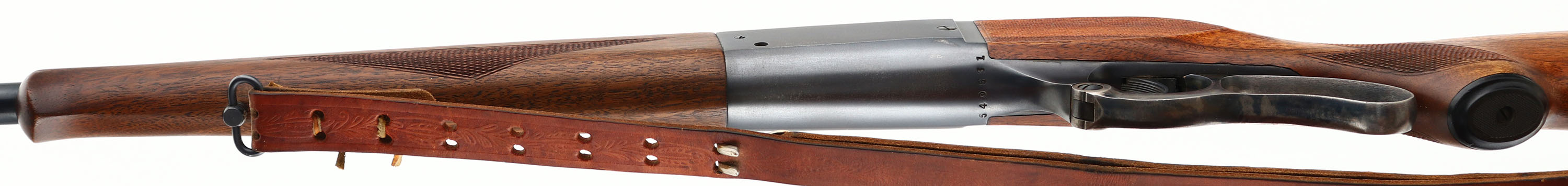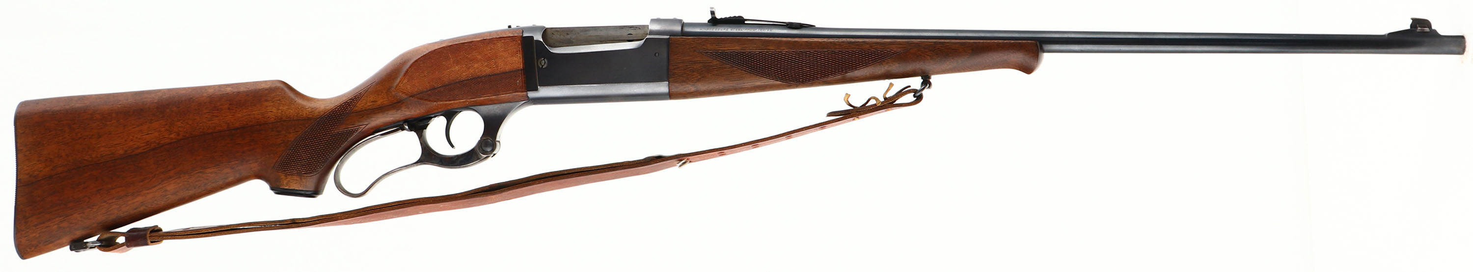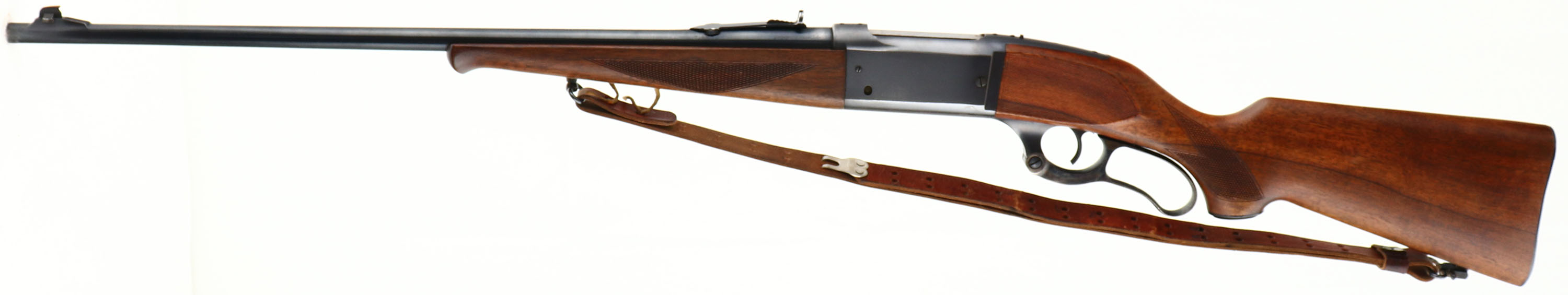 Savage, Model 99, marked 250-3000 Cal., MFG: 1950, SN: 540831, Lever Action Rifle, 24'' Tapered round barrel. The checkered & capped pistol grip wood stocks are excellent & solid. The checkering on the wrist & forend is excellent & appears original, while the checkering on the cheeks of the stock appears to have been cut at a later time & is also excellent. The finish appears original, with few handling marks. The metal finish on the barrel rates 97%, while the receiver rates 90%. The case-hardened lever displays vivid case-coloring. Barrel fitted with an adjustable rear & tall blade front sights. Top of the receiver has been tapped & drilled, with four added screws for scope mounting. Bore is excellent. The stock carries the original Savage serrated metal buttplate. Sling studs with period leather sling. Action is smooth & tight. Excellent overall condition & collectable. FFL or C&R Req. - Value: 800 to 1500