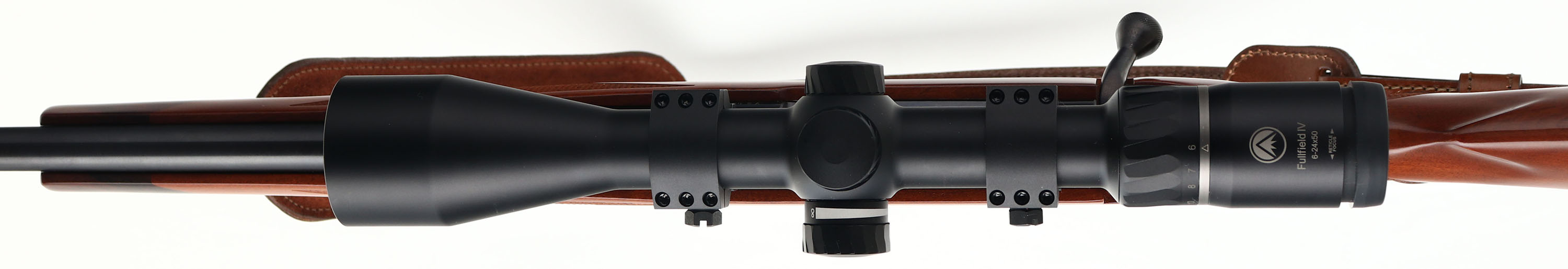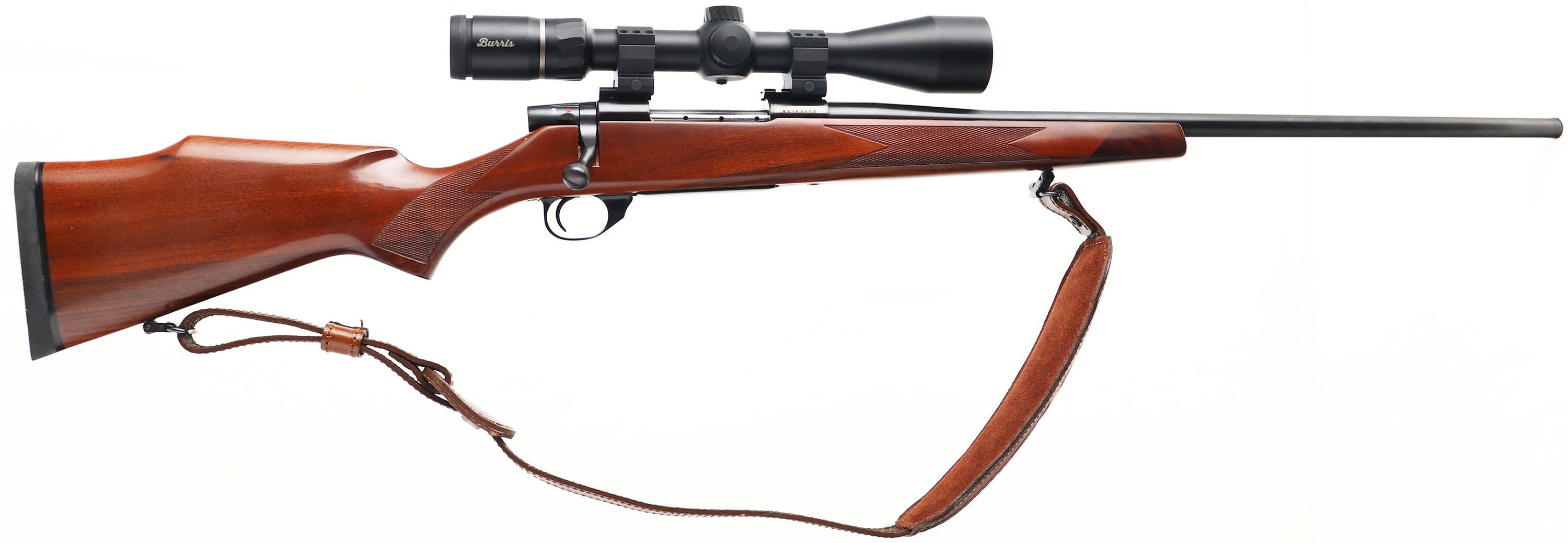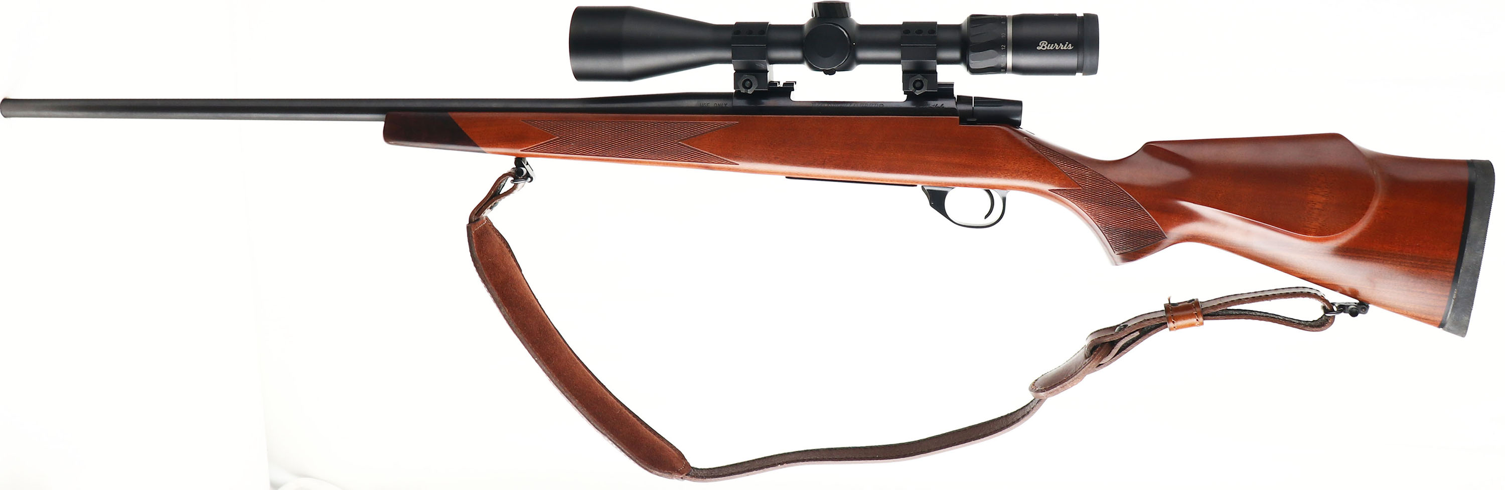 Weatherby, Vanguard, CAL: .270, MFG: Modern (2006-09), SN: VS163572, Bolt Action Rifle, 24'' barrel. The original cheeked, checkered & flat pistol grip Monte Carlo stock, with rosewood forend cap, is excellent. There are almost no handling marks to the original satin finish. The original metal blue finish rates 99%+ overall. Bore is excellent. The rifle is fitted with a Burris Fullfield IV 6-24x50mm scope, with. no open sight provisions. The stock carries the original Weatherby solid recoil pad. The rifle carries a NRA basketweave leather sling in factory sling studs. Comes with the original box sticker, owner's manual & factory test-fire target, along with the original scope box. FFL Req. - Value: 800 to 1200