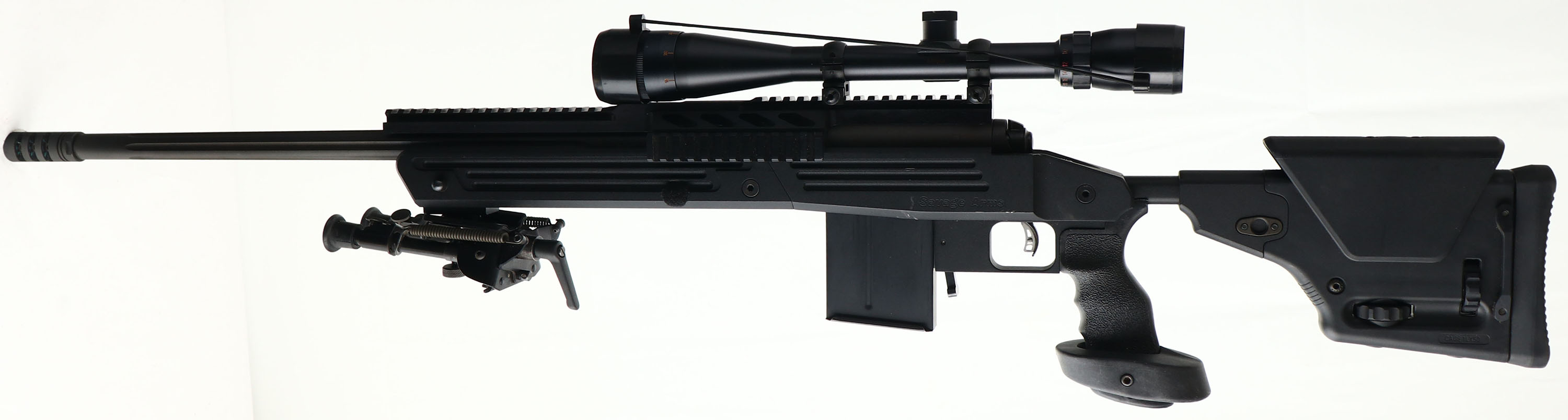Savage, Model 10 Tactical Bolt, CAL: 308 WIN, MFG: Modern, SN:H220938, Bolt Action Rifle, 24'' Fluted barrel, 26 1/2'' with muzzle break. The original metal alloy frame is excellent, with a couple of minor rubs. The synthetic PRS2 stock& pistol grip are excellent, with LOP & comb adjustments. The original metal black finish rates 99%. Bore is excellent. The receiver holds a Bushnell Banner 6x24 scope with bullet drop comp 15 to 400 yrds & lens caps. No open sight provisions. Picatinny rails on receiver, over barrel & on sides of frame. Stock carries a solid adjustable recoil pad. Sling bar & stud mounted to left side of rifle. Multi adjusting folding bipod. Detachable mag. An excellent condition modern tactical bench rifle. FFL Req. - Value: 900 to 1600