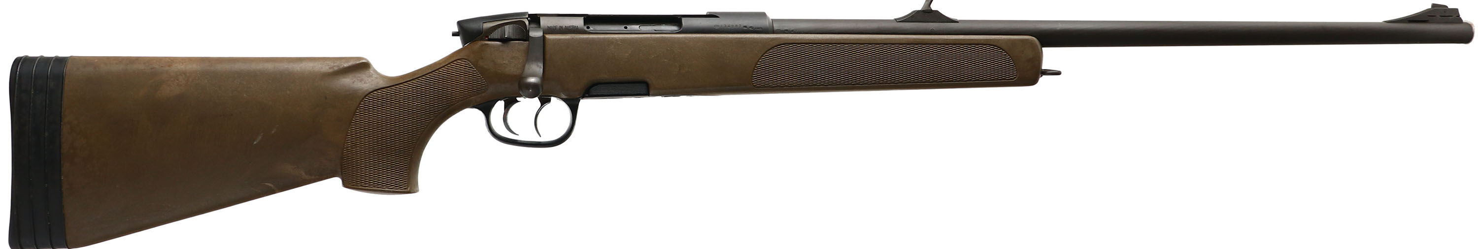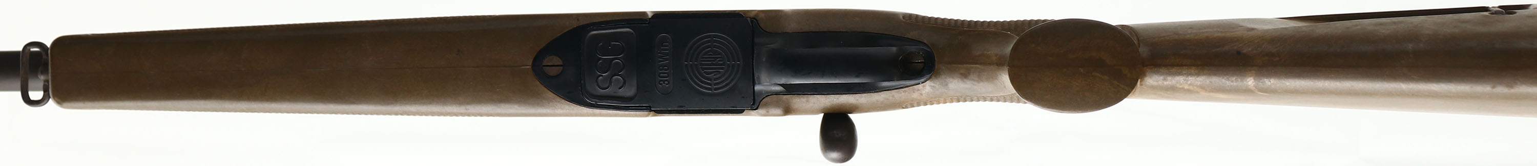 Steyr Daimler, Model SSG 69, CAL: 308 WIN, MFG: Modern, SN: 134987, Bolt Action Rifle, 25 1/2'' Cold hammer forged round barrel, with a 1in 12'' twist rate. The Steyr SSG 69 is the civilian commercial or sporting version of the standard sniper rifle for the Austrian Army. The original checkered & flat pistol grip synthetic green stock is excellent, with some minor handling marks. The original flat black metal finish rates 99% overall. Bore is very good. The receiver holds integral scope mounting rail, with an elevated fixed ''v'' rear & ramped blade front sights on the barrel. The dual set trigger system is user adjustable to trigger weight & travel. Fed via Steyr's proprietary 5-round rotary design polymer magazine, that fits flush & is transparent-backed to immediately show remaining capacity. Stock carries the factory solid recoil pad. Factory sling provisions at end of forend & on left side of stock. An excellent condition & quality built rifle. FFL Req. - Value: 1000 to 2000
