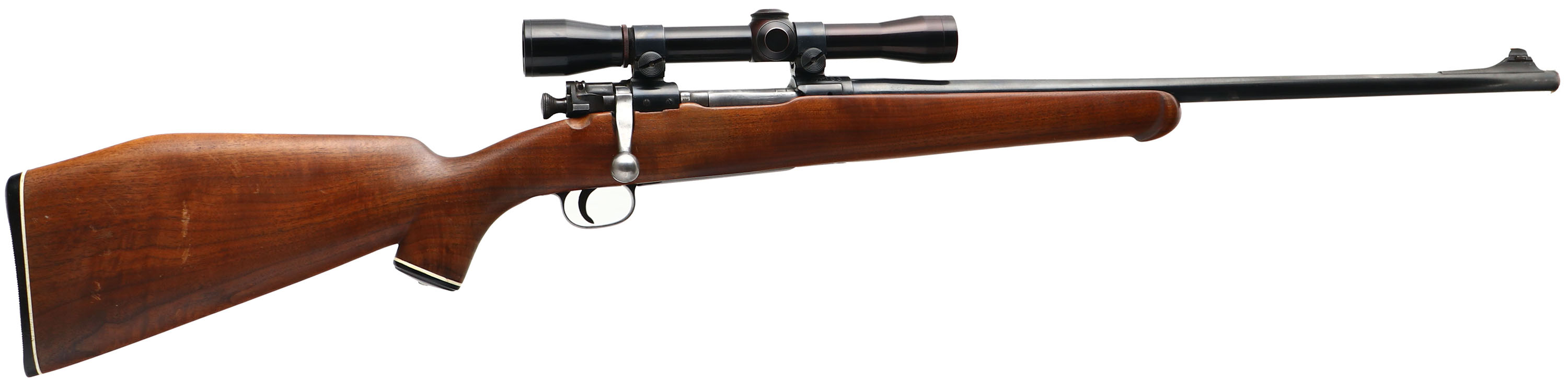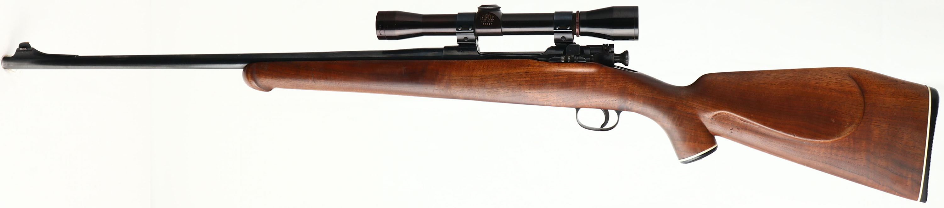 CUSTOM U.S. Springfield, Model 1903 Mark I Custom Sporting Rifle, CAL: 30-06, MFG: 1918, SN: 1051153, Bolt Action Rifle, 22 1/2'' tapered barrel. The Mark I is the version of the 1903 which was modified to accept the famous Pederson device. The Fajen 1903 sporting conversion Monte Carlo stock is excellent, with cheek, capped pistol grip & a schnabel forend tip. There are several minor to small scrapes, scratches or contusions to the original finish. The metal blue finish on the barrel & receiver rates 80% overall, with 50% on the floor plate & trigger guard. Bore is very good & bright. The receiver carries a Leupold M7-4X scope, which has toned a plum color, on Weaver rings. The barrel carries the original front sight. Buttstock carries a Fajen plastic buttplate. A nicely built & quality sporting rifle in a popular hunting caliber. FFL or C&R Req. - Value: 300 to 600