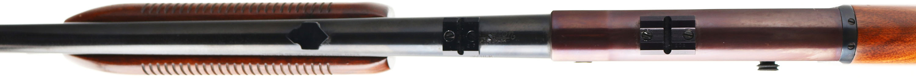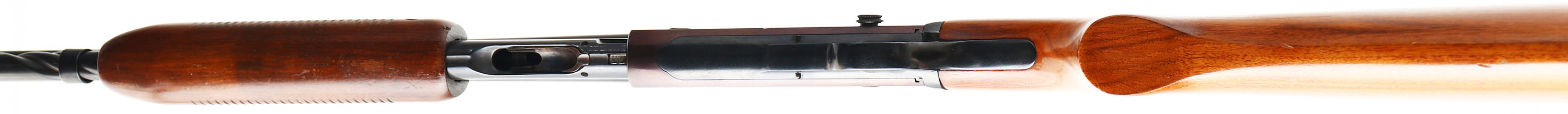 Remington, Model 141 Gamemaster, .30 REM Cal., MFG. 1938, SN: 16682, Pump Auction Rifle, 24'' round barrel, The original flat pistol grip wood stocks are excellent & solid, with the stock having been very nicely refinished, forend finish original. Stocks show very few light handling marks. The metal blue has been refinished, rating 95% on the barrel, with some speckling, while the receiver finish has toned plum with a spotty haze. Bore is excellent. Mounted with two scope blocks on the receiver & barrel, with an extra screw filled hole behind the block on the barrel. The rear dovetail filled with a blank & standard front ramp sight. Checkered metal buttplate. Action is tight & functions well. FFL or C&R Req. - Value: 300 to 600