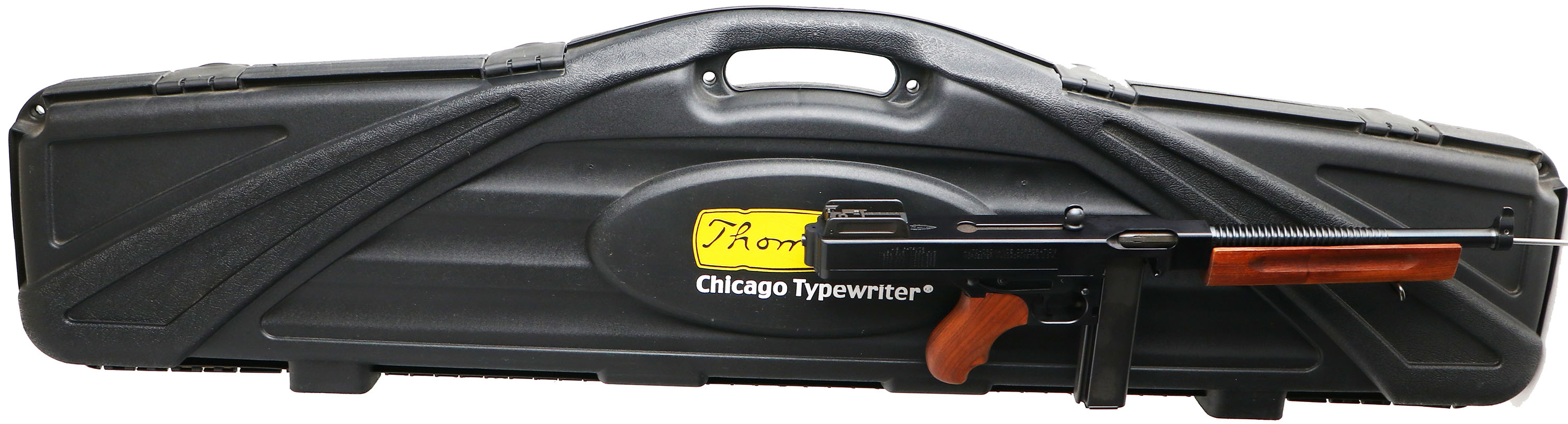 CASED & NEW Thompson Auto Ordnance Corporation, (Kahr Arms), Thompson 1927A-1 pistol, MFG: 2016, SN's: KJ0615, Semi Auto Pistol, 10.5'' barrel. This was produced in 2016 at the same time they produced the 100 Year Anniversary 1916-2016 of the Thompson Auto Ordnance Corporation sets. Auto-Ordnance was a U.S. arms development firm founded by retired Colonel John T. Thompson of the United States Army Ordnance Department in 1916. Auto-Ordnance is best known for the Thompson submachine gun, used as a military weapon by the Allied forces in World War II, & also notorious as a gangster weapon used during the Roaring Twenties. The Thompson 1927A-1 pistol (Tommy Gun) carries deluxe American walnut vertical foregrip, pistol grip & forend which are mint, displaying beautiful wood grain & factory finish. The factory metal blue finishes are 99%+. Features include a pinned in front blade & a folding ladder rear adjustable sight. Bore is mint. Has the stick mag. The gun come stored in a polymer hard case with the yellow Thompson Bullet logo & the words ''Chicago Typewriter'' in white stamped on the black case cover. Factory owner's manuals, booklets & lock are included in case. Frank Harris, VP of Sales & Marketing, Kahr Firearms Group wrote regarding the sets & this pistol model, ''We are proud to honor the name & the legacy of General John T. Thompson with this special 100th Anniversary matched set. There is a rich historical past attached to the Tommy Gun, & we feel General Thompson would be proud to see that what started as a research project in 1915 has served the military, law enforcement & shooting enthusiasts around the world so prominently for over 100 years.'' This is N.O.S. from a gun shop & not previously sold to the public. It is a fantastic & high quality firearm, which have risen in value & has become very collectible. MSRP is $1800. Reference lot #5860 in this auction for additional mags & mag pouches which fit this gun. FFL Req. - Value: 1000 to 1700