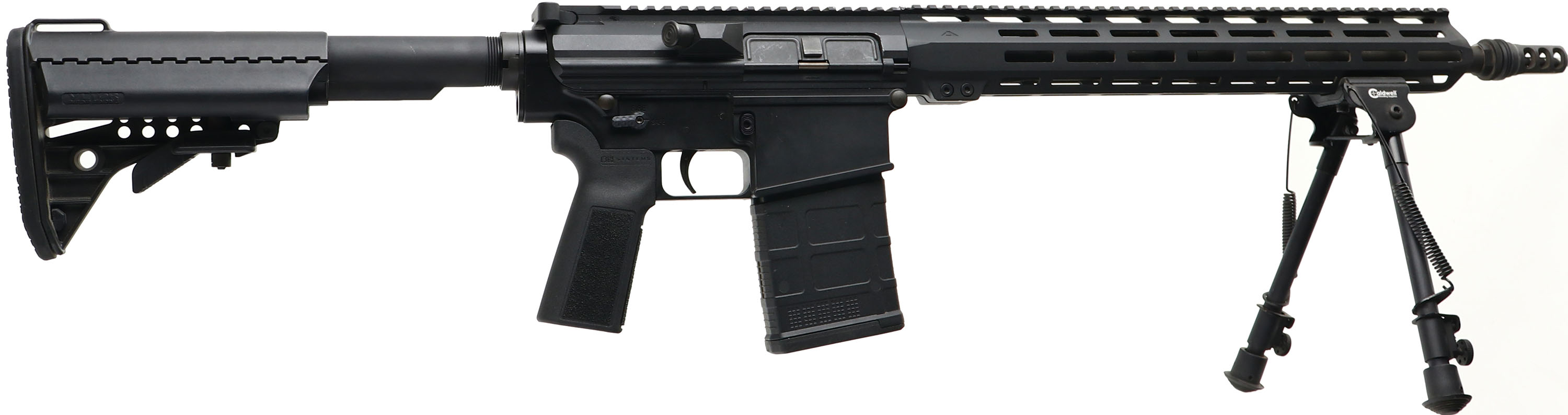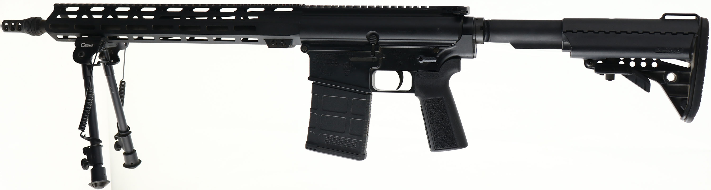DPMS Panther Arms, Model LR-308, CAL: 308, MFG: Modern, SN: FFK035587, Semi Auto Pistol, 16 1/4'' barrel. The synthetic B5 systems grip & VLTOR 6pt adjustable stock are excellent. The matte black finish rates 98% overall, with light handling marks. Bore is excellent. Full length picatinny rail for optics. Caldwell adjustable bi-pod. 20rnd Magpul P-MAG. FFL Req. - Value: 500 to 900