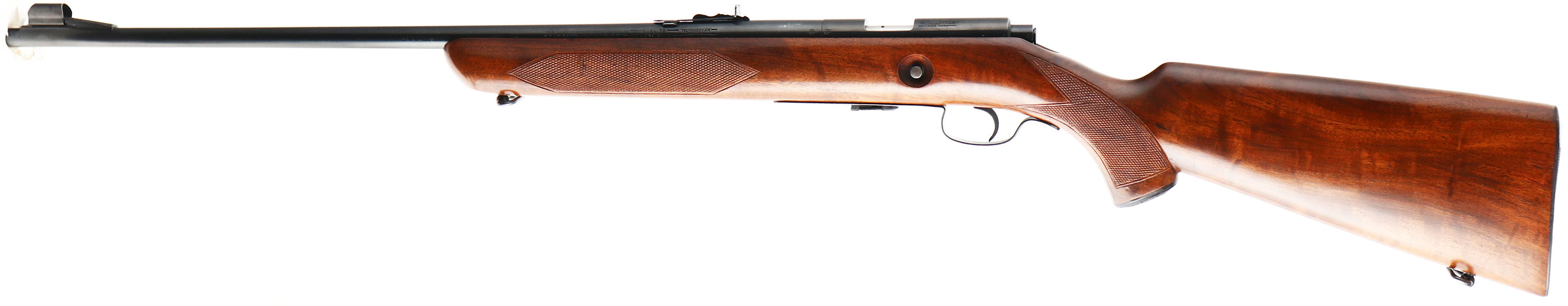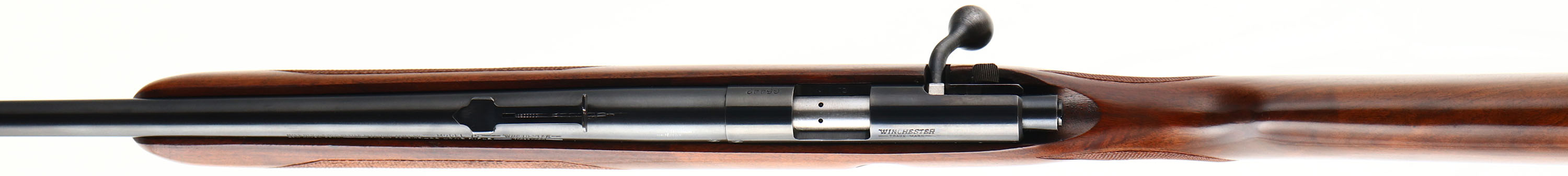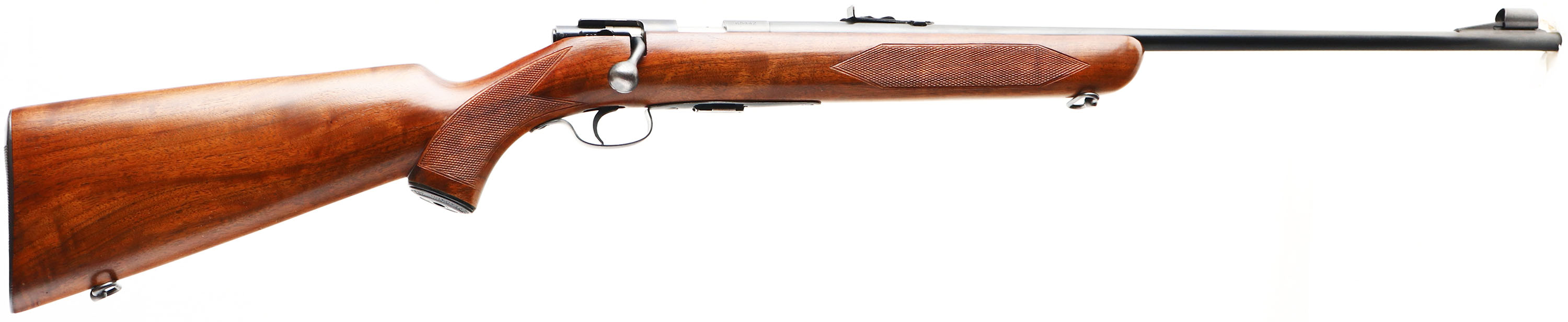 Winchester, Model 75 Sporter, .22 LONG RIFLE Cal., MFG. 1949, SN: 65442, Bolt Action Rifle, 24'' Tapered round barrel, Civilian sporting variation of the Model 75 Target rifle. The factory checkered & capped pistol grip, select walnut stock is excellent & original. Original factory finish is excellent, with sharp checkering & very few tiny handling marks. The factory original metal blue finish is 99%. Bore is excellent. The barrel is mounted with an adjustable rear & hooded front blade sights. Side push button mag release & correct ''Winchester'' marked detachable mag. Winchester metal serrated buttplate. Factory sling swivels. Overall excellent & a very collectible Sporter when found is such high original condition.* FFL or C&R Req. - Value: 1600 to 2200