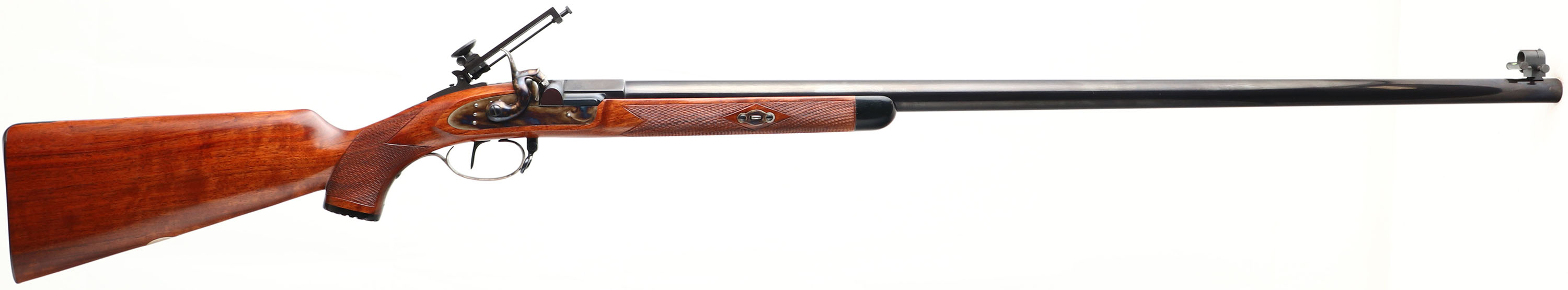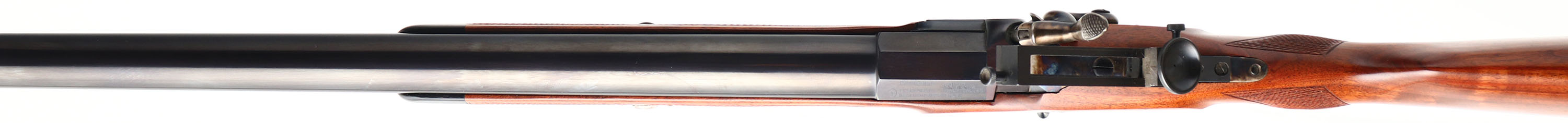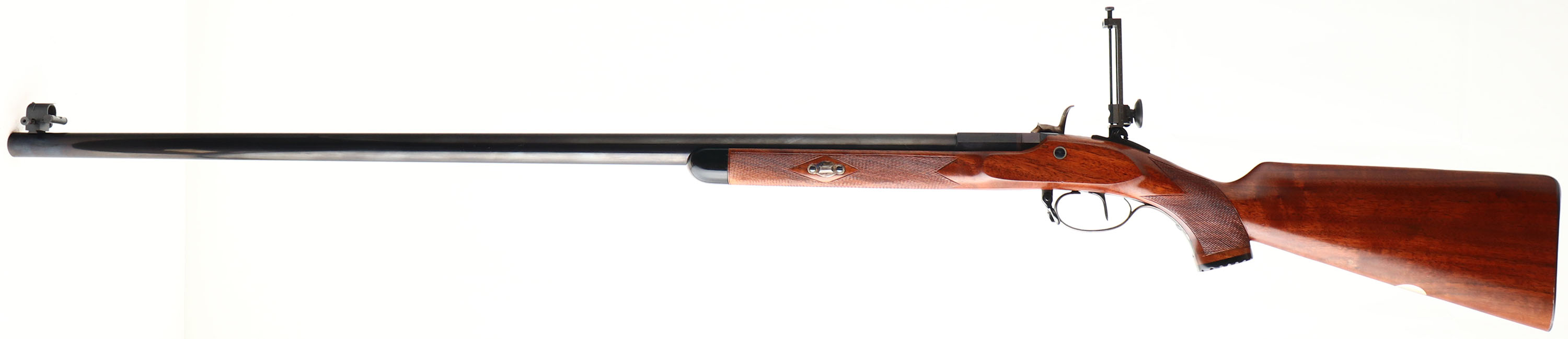 Pedersoli, Gibbs Rifle, CAL: 45, MFG: Modern, SN: DA115908, Percussion Blackpowder Rifle, 36'' barrel. The checkered & capped pistol grip stock, with ebony forend tip is excellent. The belly of the stock has a blank silver oval nameplate. The metal blue finish on the barrel rates 99%. The case-hardened side plate, hammer, trigger guard & wedge all retain vivid case-colors. Bore is excellent. The receiver holds a large Creedmoor aperture tang sight & the barrel has a hooded level front sight, with interchangeable reticles. Stock has a smooth metal buttplate. The Pedersoli Gibbs Muzzleloading Rifle is a reproduction of one of the most famous rifles in the field of precision target shooting. Made in 1865 by the English gunsmith George Gibbs this rifle was made to satisfy both the aesthetic & utilitarians who wish to compete in longer range shoots. Blackpowder, No FFL Req. - Value: 1500 to 2500