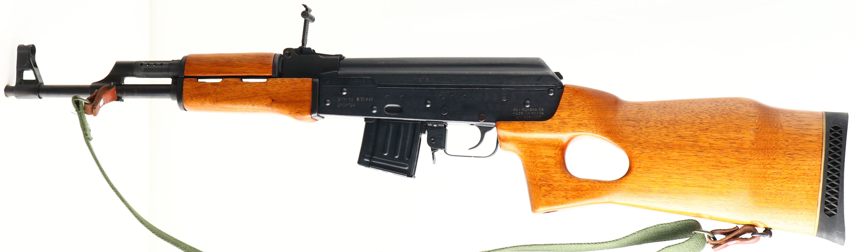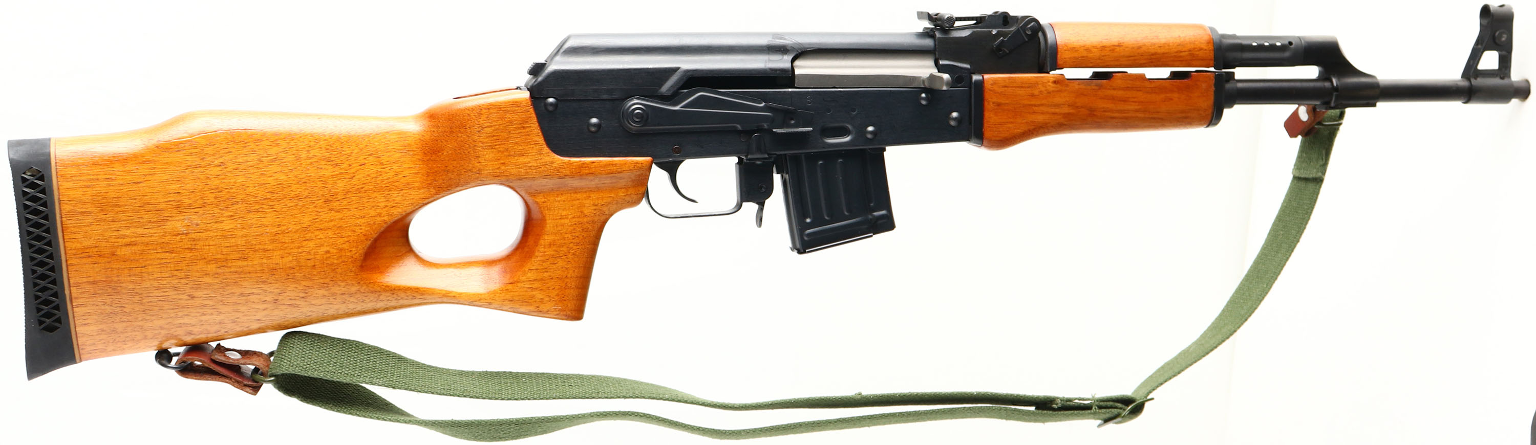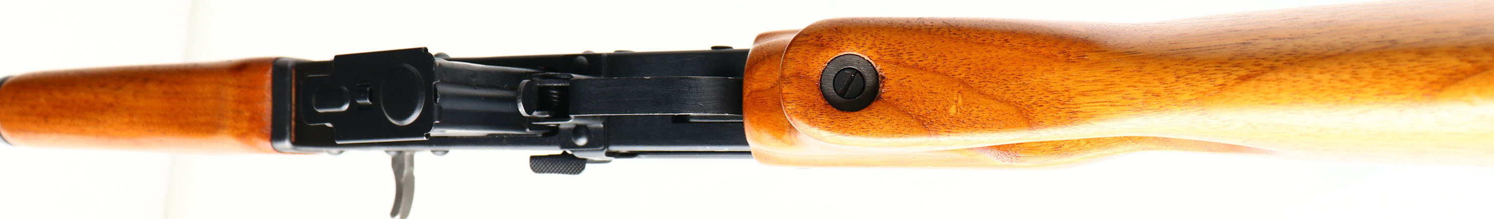 Norinco, Model: BWK-92 Sporter, Cal: 5.56x45mm, MFG: 1990's, S/N: 301018, Semi-auto Rifle, 16 1/4'' barrel. The Wood thumbhole stock & handguard are excellent almost no wear visible. The black metal finish rates 90% overall with small scuffs & scratches. Left side of receiver is marked with S/N, ''BWK-92 SPORTER'', ''5.56X45'' is hand etched into to side, ''KSI POMONA CA'', ''MADE IN CHINA BY NORINCO''. The bore is excellent, bright & mirror like. Barrel holds a adjustable hooded post front sight with a tangent U-notch rear sight marked 1 to 8. stock carries a rubber recoil pad. Rifle comes with a green canvas sling, has no cleaning rod or bayonet lug. 5.56 AK's are far & few between since not many were made with the availability of AR-15's and their cheaper parts, making this a pretty rare find. FFL Req - Value: 1000 to 2000