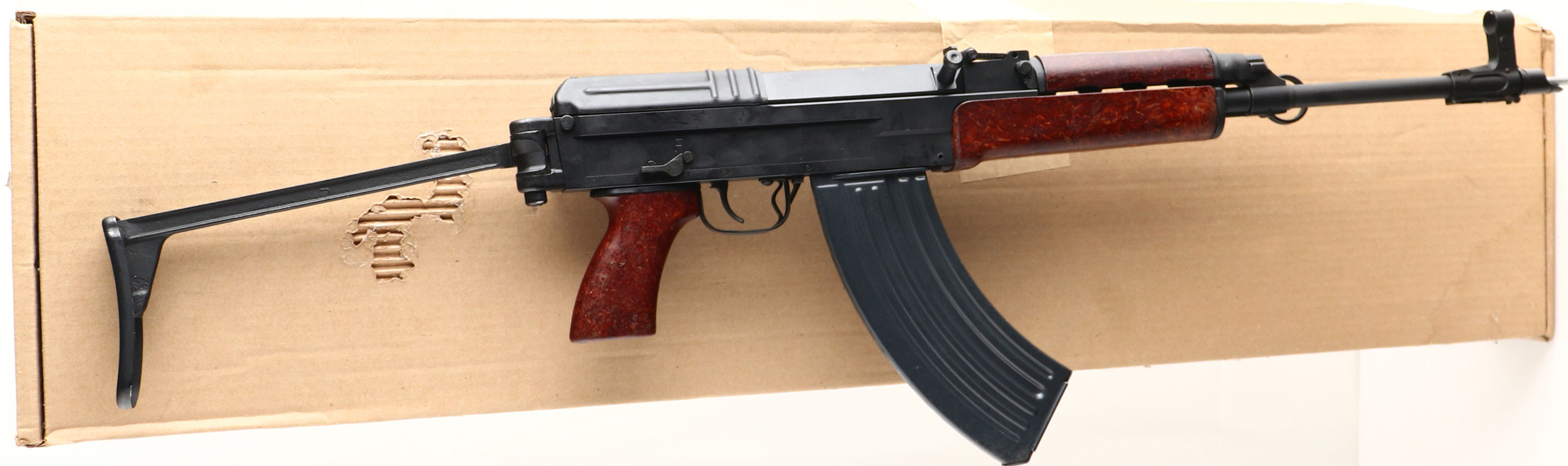 BOXED, CZ (Century Arms), Model VZ 2008 Sporter, CAL; 7.62x39, MFG: 1959-84, SN: VZ08PM-009136, Semi Auto Rifle, 16 1/2'' barrel. The the original wood impregnated Bakelite stocks also known as ''Beaver Barf'' in the U.S., are excellent. Sleleton folding stock. The factory anodized matte black finish rates 98% overall. Bore is excellent. Factory sights. Slanted muzzle brake. Front sling ring & rear sling loop. Comes in factory box. FFL Req. - Value: 900 to 1400