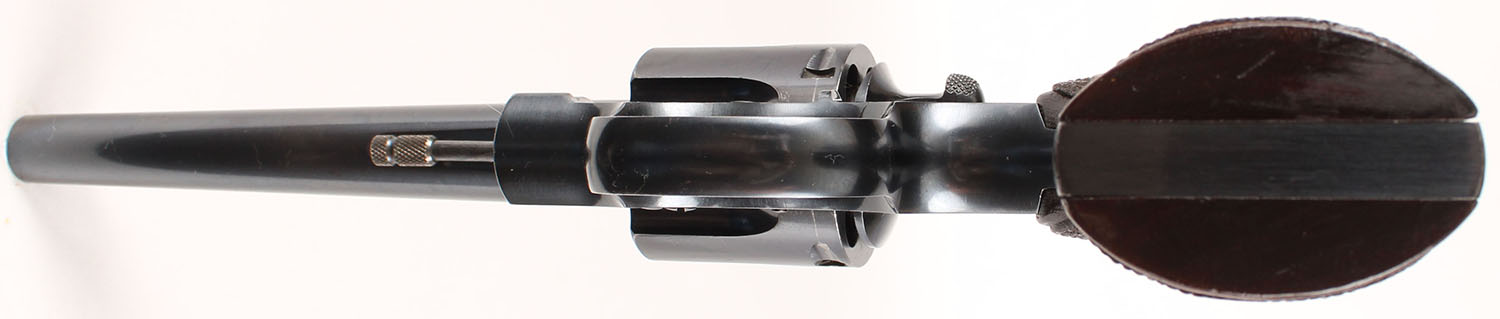 Colt, Officers Model Target Third Issue, CAL: 38 SPL, MFG: 1936, SN: 599974, Double Action Revolver, 6'' barrel. The top of the barrel is marked with a two line address & patent dates. The left side of the barrel is marked in two lines ''OFFICERS MODEL 38 HEAVY BARREL'' & the Rampant Colt logo is clearly stamped on the left side of the frame. The Colt logo medallion wraparound checkered grips are excellent. The original metal blue finish rates 97% overall. Bore is excellent. Adjustable square notch rear sight & pinned blade front sight. Checkered backstrap. FFL or C&R Req. - Value: 1000 to 2000