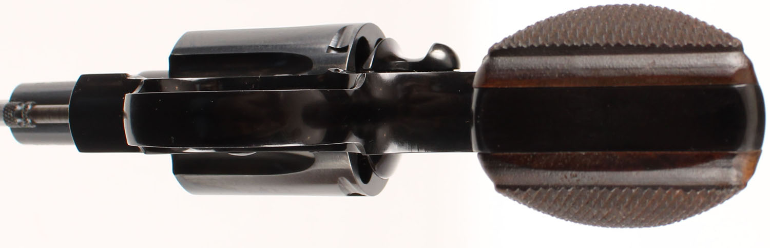 BOXED, Colt, Agent, First Issue, CAL: 38 SPL, MFG: 1962-72, SN: 156724, Double Action Revolver, 2'' barrel. The silver Colt medallion checkered wood grips are mint. The original Colt high polish metal blue finish rates 100% overall. No drag line. Bore is mint. Never been fired. Factory sights. Comes in original, correct label wood grain box, with original wax paper & insert. Box is very good, with edge & corner wear. These revolvers are similar to the Colt Cobra first issue, except with a shorter grip frame. This example is one of, if not the highest condition Colt Agent revolver we've seen. FFL or C&R Req. - Value: 1000 to 2000