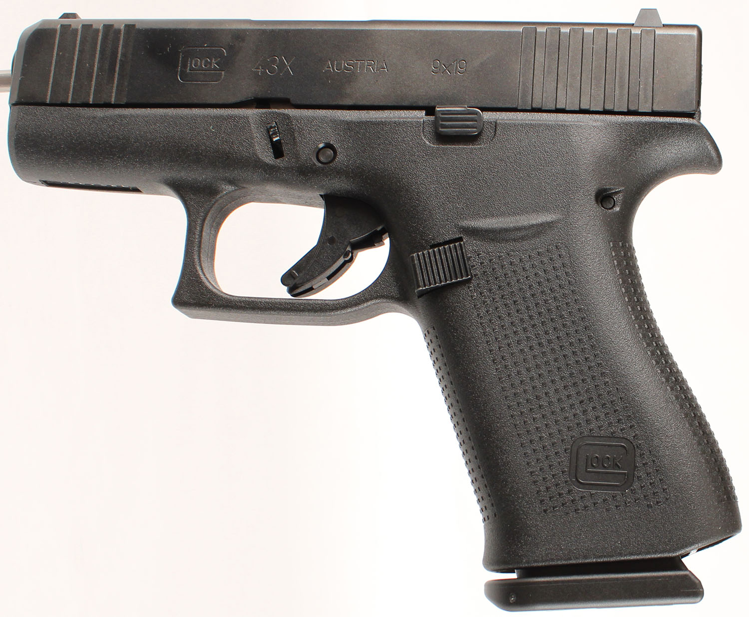 NEW CASED, Glock, Model 43X Gen 5, CAL: 9mm, MFG: Modern, SN: BZRA074, Semi Auto Pistol, 3 1/2'' barrel. The textured polymer grip & frame are mint. The factory matte black finish is mint. Bore is mint. Factory square notch white rear sight & single white dot front sight. Comes in factory hard case, with owners manual, lock/key, cleaning rod/brush, (2) 10rd mags & speed loader. NOS. FFL Req. - Value: 450 to 550