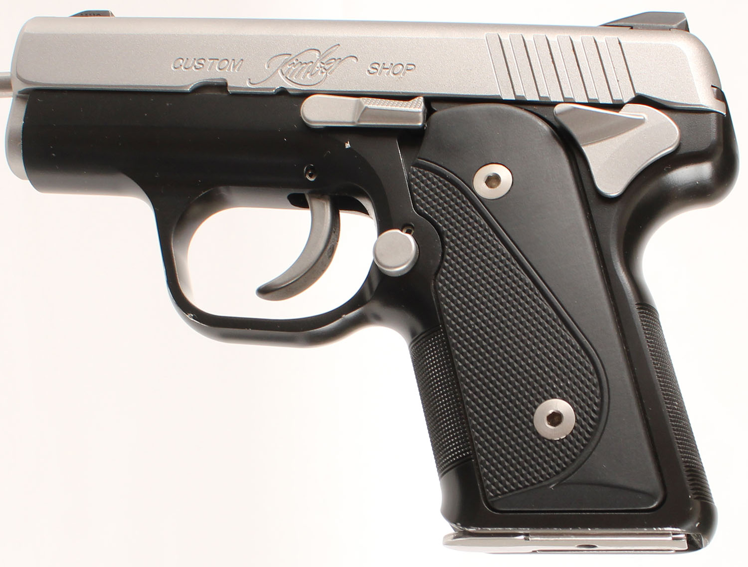 Kimber Custom Shop, Solo CDP, CAL: 9mm, MFG: Modern, S1170418, Semi Auto Pistol, 2 3/4'' barrel. The checkered metal grips are excellent. The original gloss black finish on the frame rates 97% & the stainless steel slide is excellent, with a couple small areas of discoloration. Bore is excellent. Mepro Tru-Dot Tritium powered night sights. Comes with Kimber marked soft case. FFL Req. - Value: 500 to 700