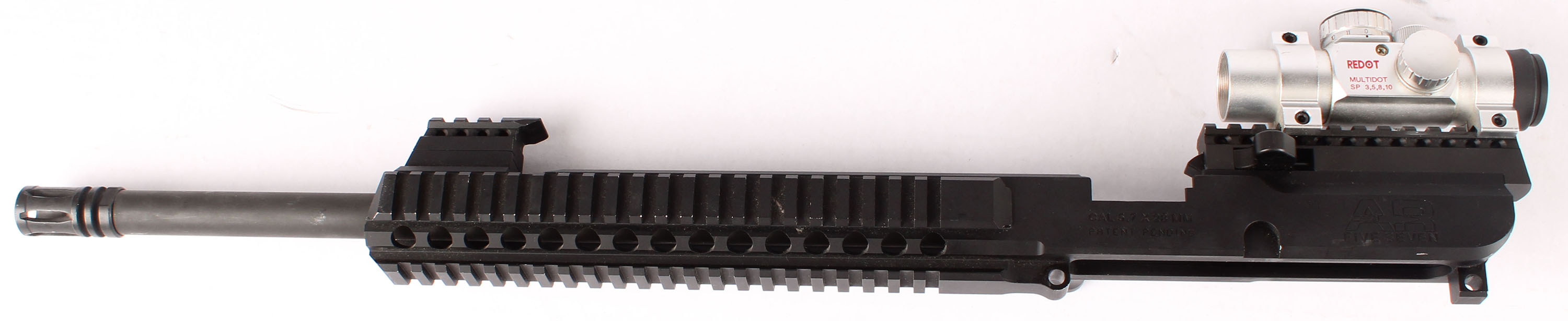 AR57 LLC, Upper AR-15 receiver & barrel, no bolt. PARTS GUN, Cal: 5.7x28mm, MFG: modern, S/N: API01418, Semi-auto, 16'' barrel. The metal finish rates 95% with some light scuffs/ scratches. Bore is MINT. Comes with a Millet Multi-Dot SP, red dot does work just needs a battery, top turret is loose & needs adjusted. PARTS RIFLE SOLD ''AS-IS, WITH NO RETURNS. Upper, No FFL Req. - Value: 200 to 400