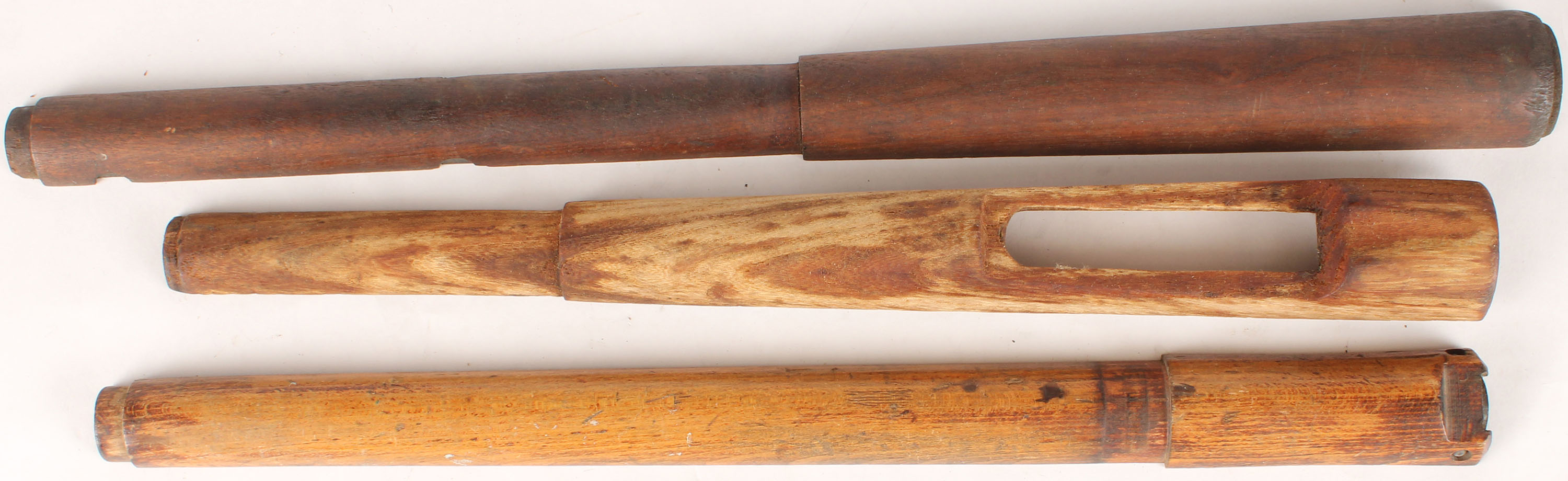 Lot of 3 wood forearms. Grade: Very Good - Value: 2 to 50