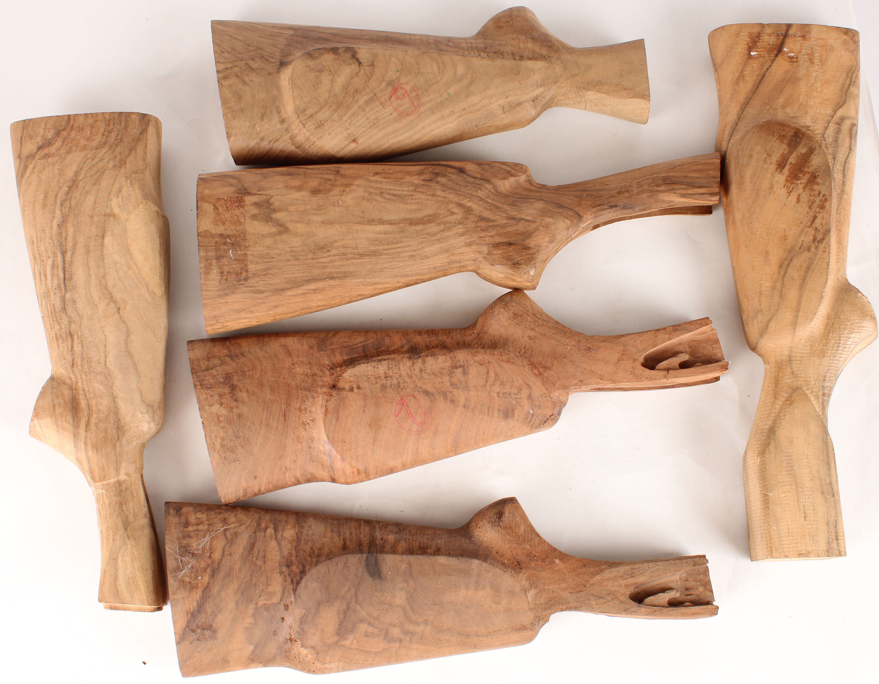 | Large lot of 6 unfinished deluxe rifle stocks, All with pistol g...