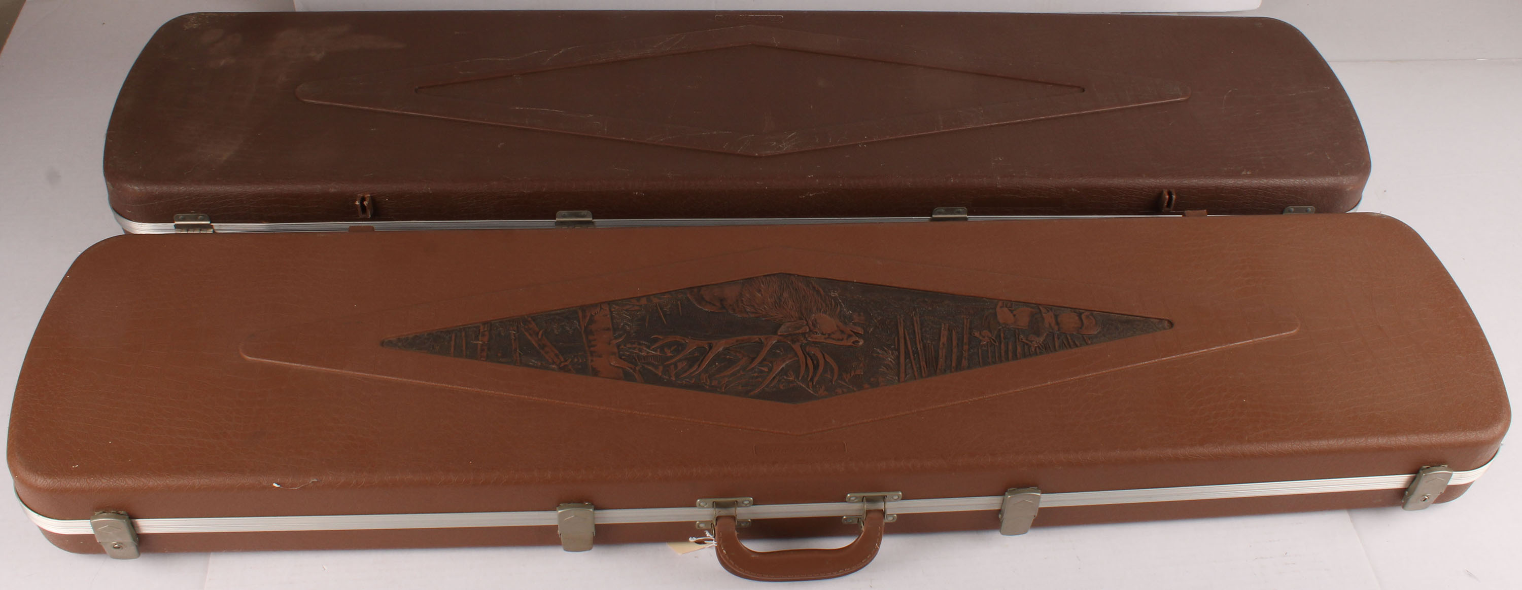 Lot of 2, vintage hard plastic gun cases, both have foam inserts, no spots for pad locks. Cases are 52 1/2'' x 12'' x 4 1/2''. Grade: Very Good ++ - Value: 20 to 100
