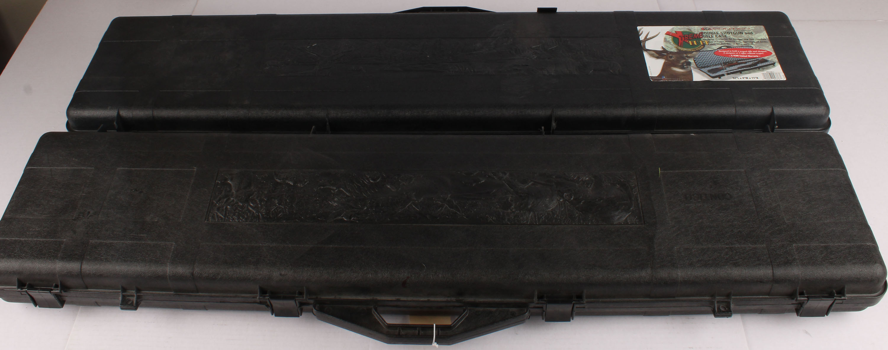 lot of 2, plastic gun cases, both have foam inserts, & spots for padlocks, cases are 52'' x 11'' x 4 ''. Grade: Excellent - Value: 20 to 100