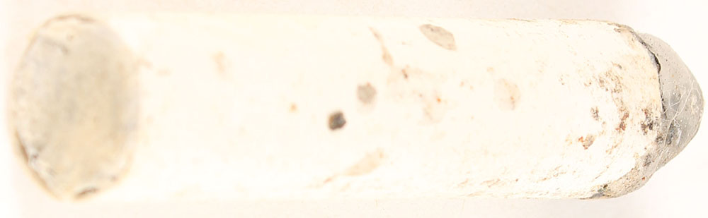 VERY SCARCE N/H, 10.4MM ''NEEDLEFIRE'' constructed with white paper CS. 1 11/16'' long, closed at the base with paper wad backed with fulminate, LD. PTD. Bullet. Grade: Very Good + - Value: 80 to 120