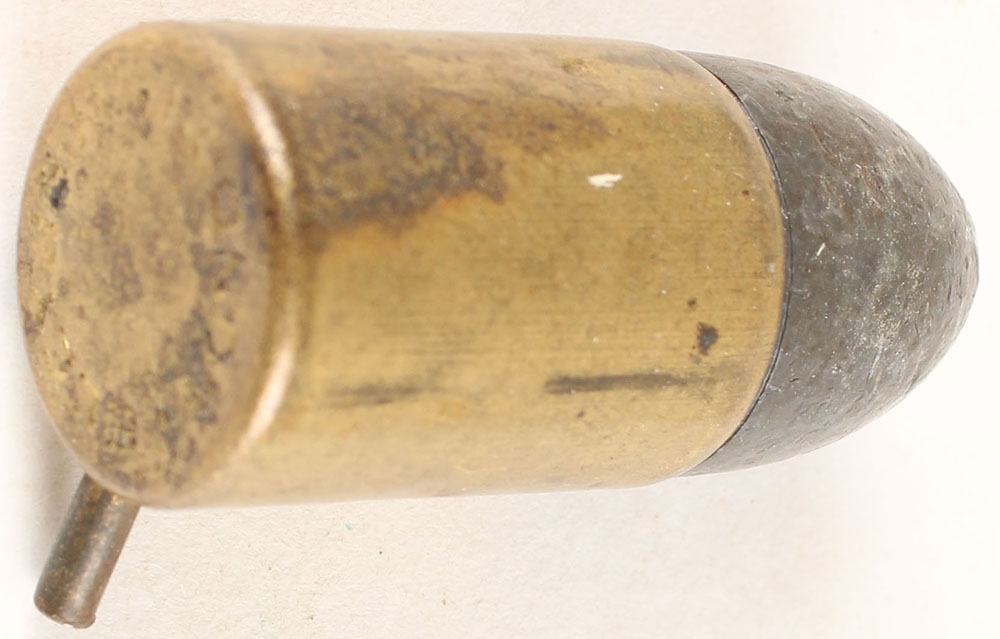 15mm Pinfire. HS:''ELEY 15M. LONDON'', semi point lead, brass case. Grade: Excellent - Value: 20 to 50