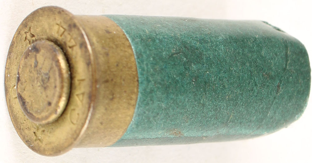 44 Gabet Mock Duel. HS:''D * CAL 44 *'', brass base, paper body, round wax ball. Grade: Very Good + - Value: 10 to 30