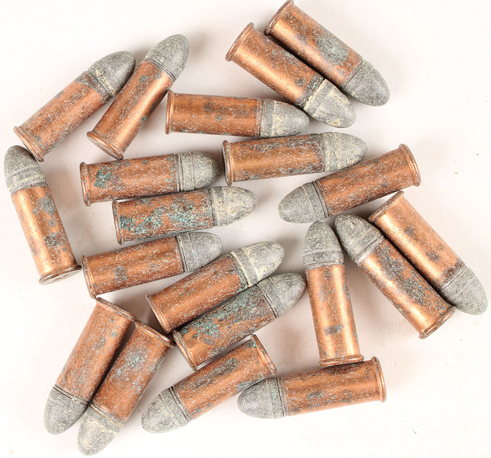 Lot of 20. 38 Long Rimfire. All made by United States Cartridge Co. HS:''US''(raised). RN Lead. Grade: Very Good + - Value: 80 to 140