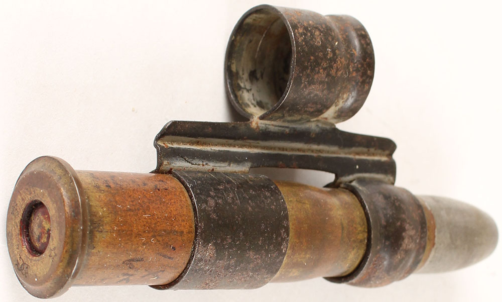 11mm Vickers ''Balloon Gun''. Tracer, HS:''* GG *'' Tinned FN bullet.. Included is one link for the Vicker's Machine Gun. Grade: Very Good ++ - Value: 20 to 50