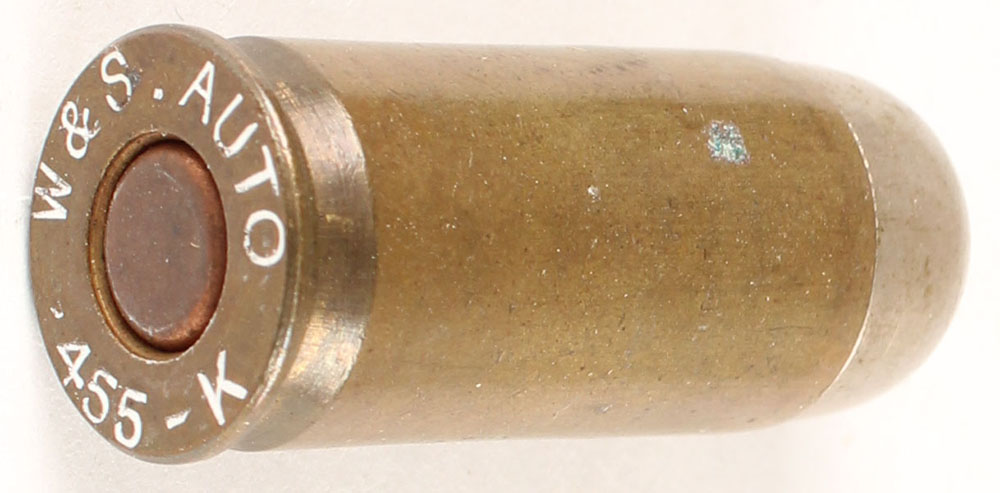 .455 Webley Automatic. HS:''W&S AUTO K 455''. RN CN FMJ. Grade: Excellent + - Value: 20 to 50