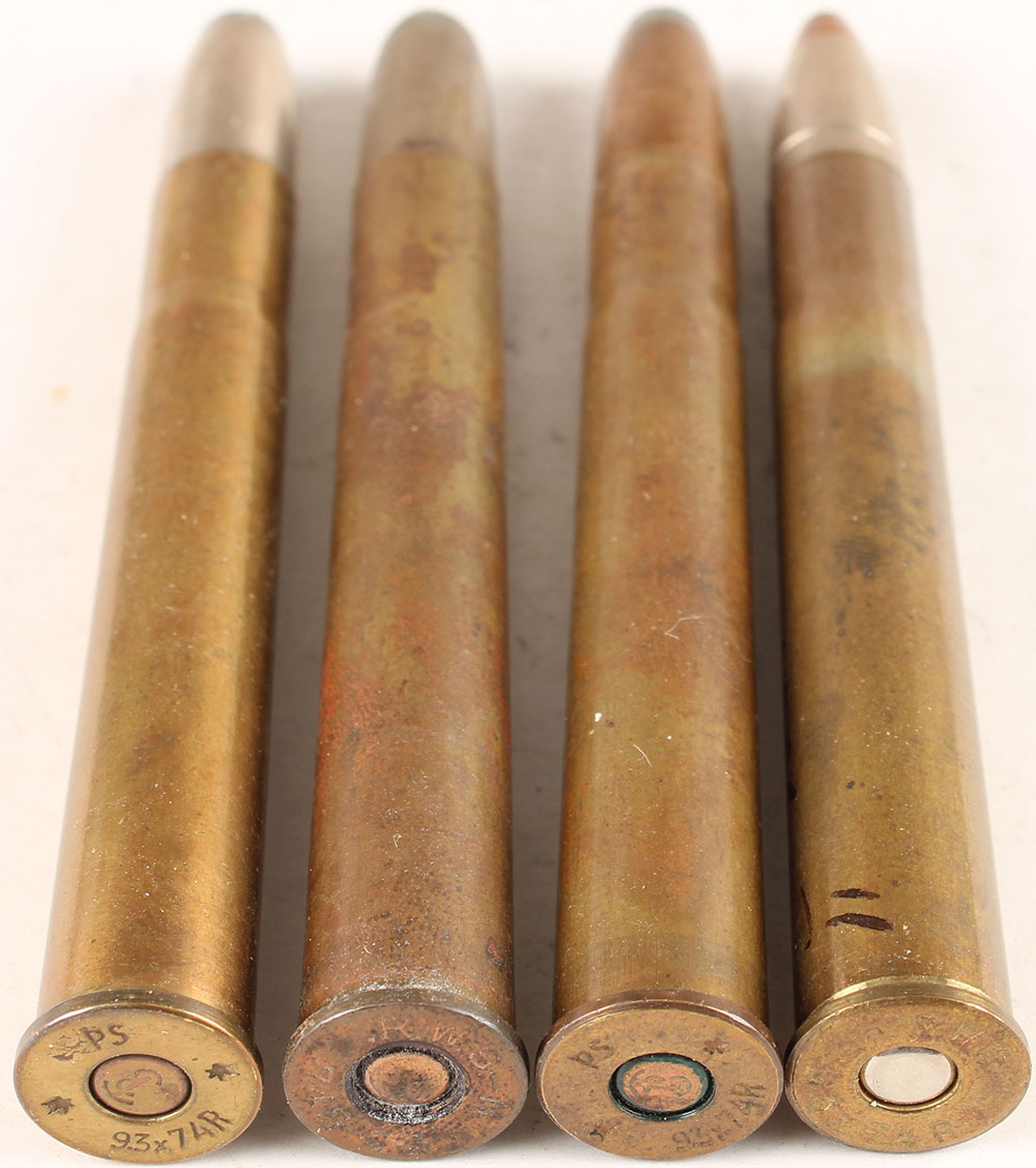 Lot of 4. 9.3x74R. 2 ea by RWS and PS. Different bullet loadings. Grade: Excellent - Value: 10 to 30