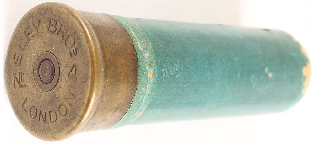 H/S= ''ELEY BROS London No 4'' 3 3/4'' OAL, loaded green paper case. Grade: Very Good - Value: 10 to 50