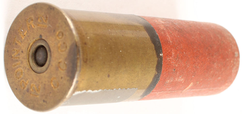 H/S= ''Pointer 12ga C.C.CO.'' 2 3/8'' OAL, loaded red paper case. Grade: Very Good - Value: 6 to 50