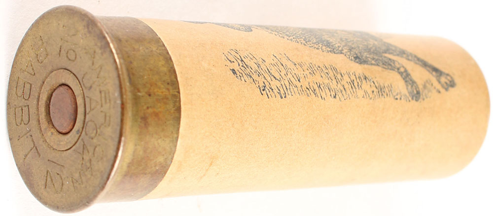 H/S= ''American Jack No 12 Rabbit'' 2 7/16'' OAL, loaded tan paper case. Grade: Excellent - Value: 6 to 50