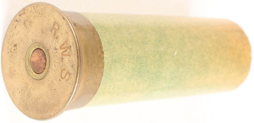 H/S= R.W.S.4ga'' 3 1/4'' OAL, empty green paper case. Grade: Very Good ++ - Value: 10 to 50