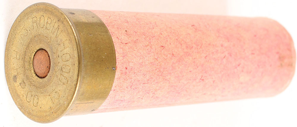 H/S= '' Robin Hood 12ga, R.H.P.CO'' 2 11/16'' OAL, empty tan paper case. Grade: Very Good - Value: 10 to 50