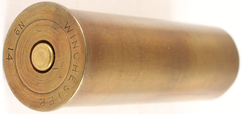 H/S= ''Winchester No 14'' 2 3/8'' OAL, empty brass shotshell. Grade: Very Good + - Value: 6 to 30