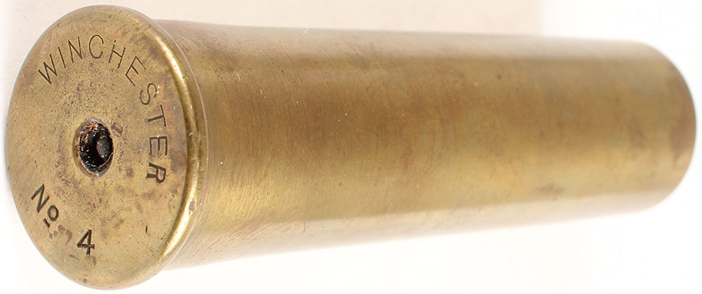 H/S= ''Winchester No 4'' 4'' OAL, empty brass shotshell. Grade: Very Good + - Value: 10 to 80