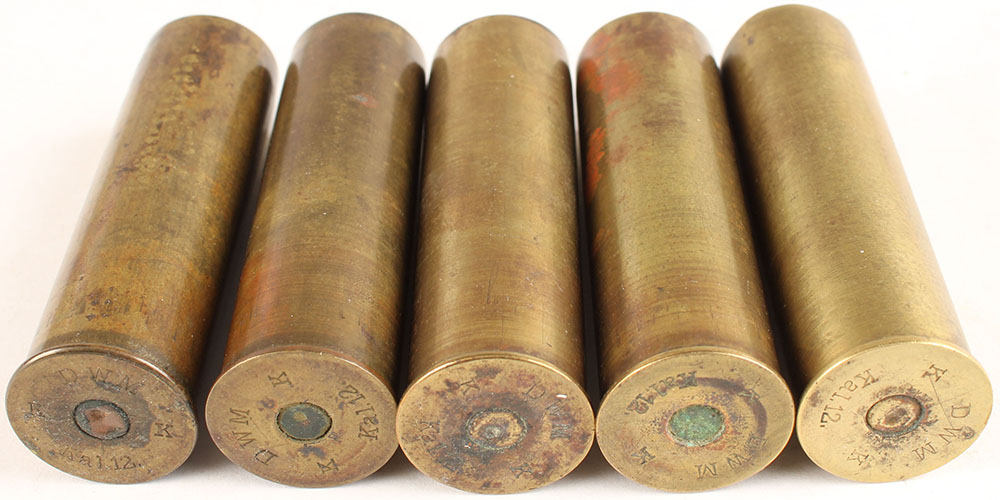 | Lot of 5 H/S= ''DWM K K Kal. 12'' 2 3/4'' OAL, fired empty...