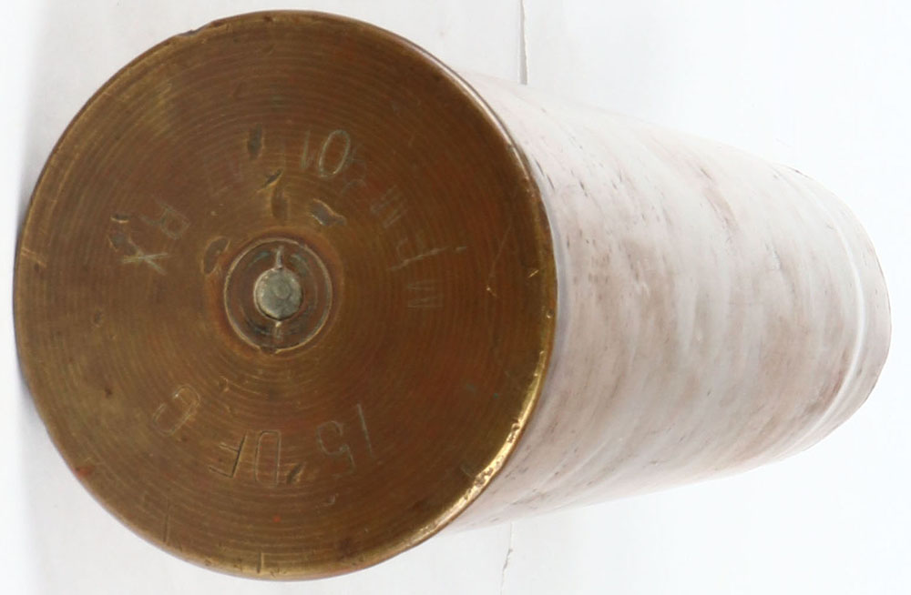 French, 75mm shell for Mle 1897 Field gun, H/S: ''75 DF C'', ''MGM 901 17 RX'', OAL: 13 1/2''. Grade: Very Good + - Value: 10 to 100