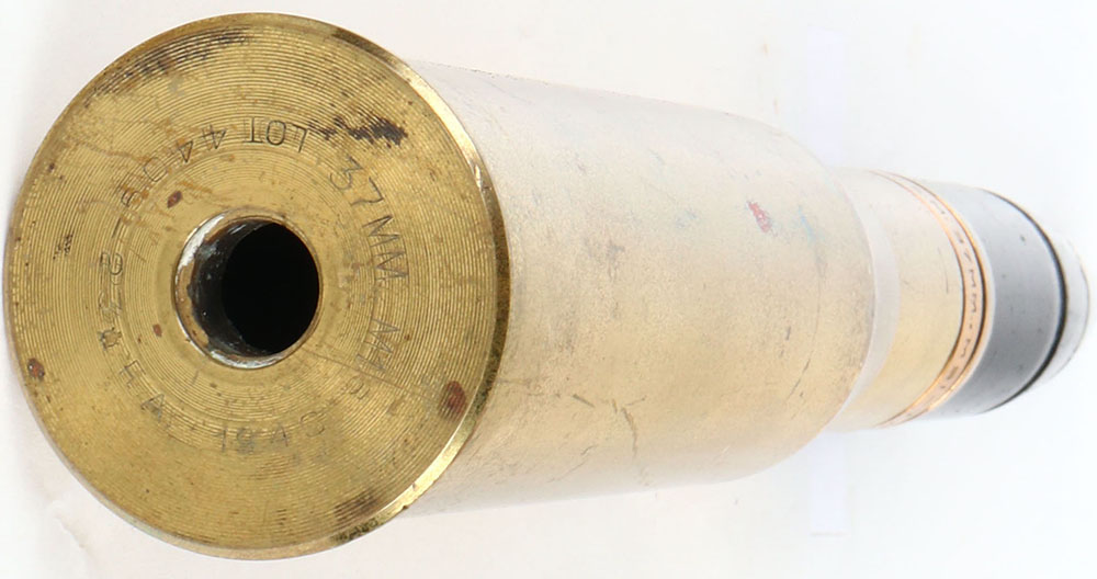 US, 37mm shell & projectile for US M3 Gun, H/S: ''37MM M1'', ''LOT 4409-23 F.A. 1940'', OAL: 14 1/2''. Grade: Excellent - Value: 10 to 100
