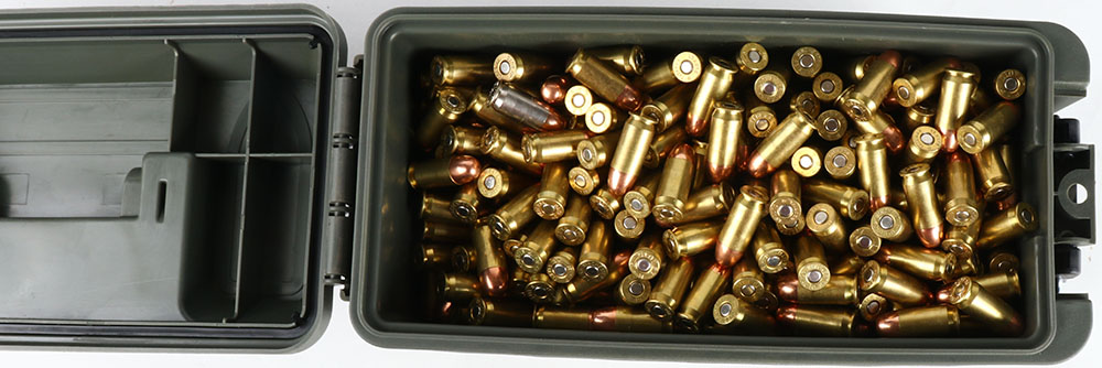 Plastic ammo can, Full of Approx 750 Rds. Of FMJ .45 ACP, Mix H/S, ammo is excellent. Grade: Excellent - Value: 400 to 800