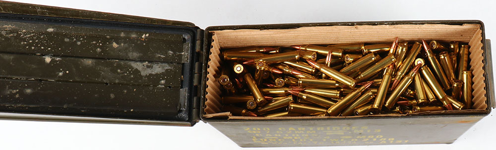 M19A1 .30 cal ammo can full of Approx 500 Rds. Of Federal 5.56mm FMJ, ammo is excellent. Grade: Excellent - Value: 250 to 500