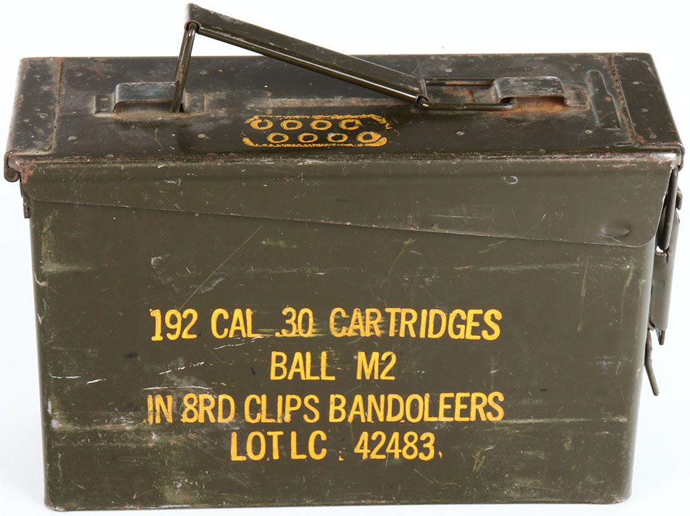 M19A1 .30 cal ammo can, Empty, inside is clean with no rust. Grade: Excellent - Value: 10 to 30