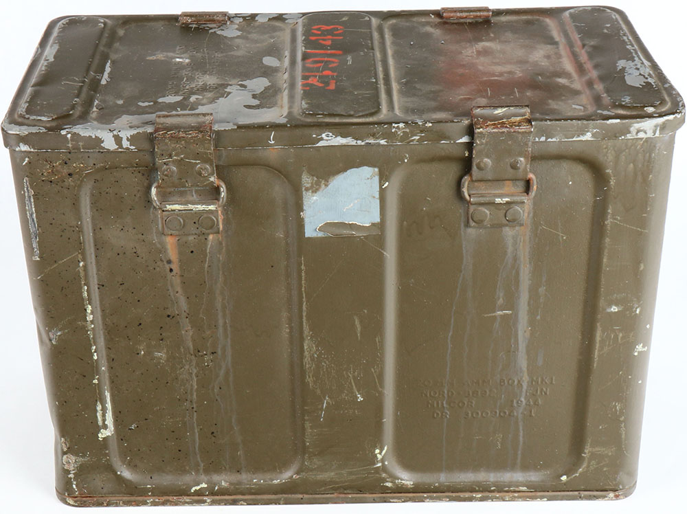 US, 20mm Ammo box MK.1, storage box for 20mm ammo, empty, inside is clean with no rust. Grade: Very Good ++ - Value: 30 to 60
