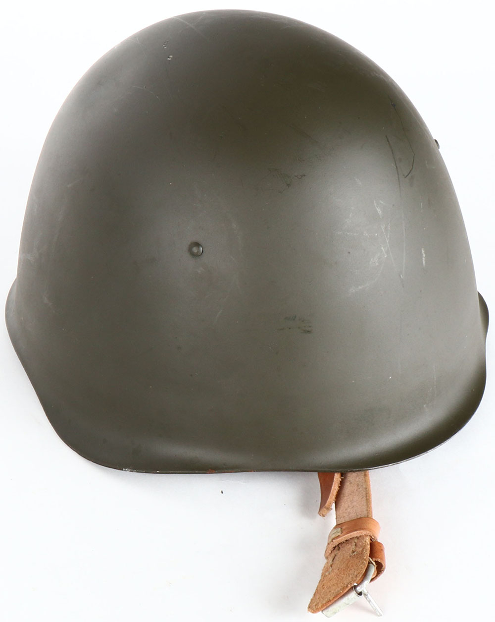 Polish Wz 50 Steel helmet, leather liner & chinstrap are excellent, ''B5'' marking inside helmet, the polish Wz 50 is a copy of the Russian SSH40 with a Italian M33 Liner & chinstrap. Grade: Excellent - Value: 80 to 160