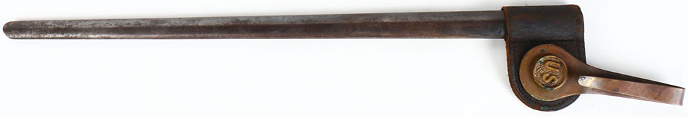 US, Springfield Trapdoor bayonet sheath & frog, sheath has rust & wear, leather is worn & is starting to crack. Grade: Very Good - Value: 20 to 60