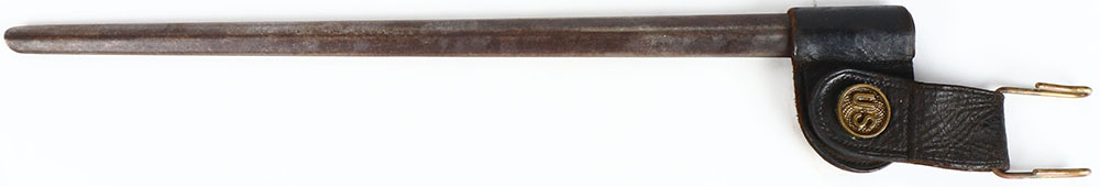 US, Springfield Trapdoor bayonet sheath & frog, sheath has rust & wear, leather is worn & is starting to crack. Grade: Very Good - Value: 20 to 60